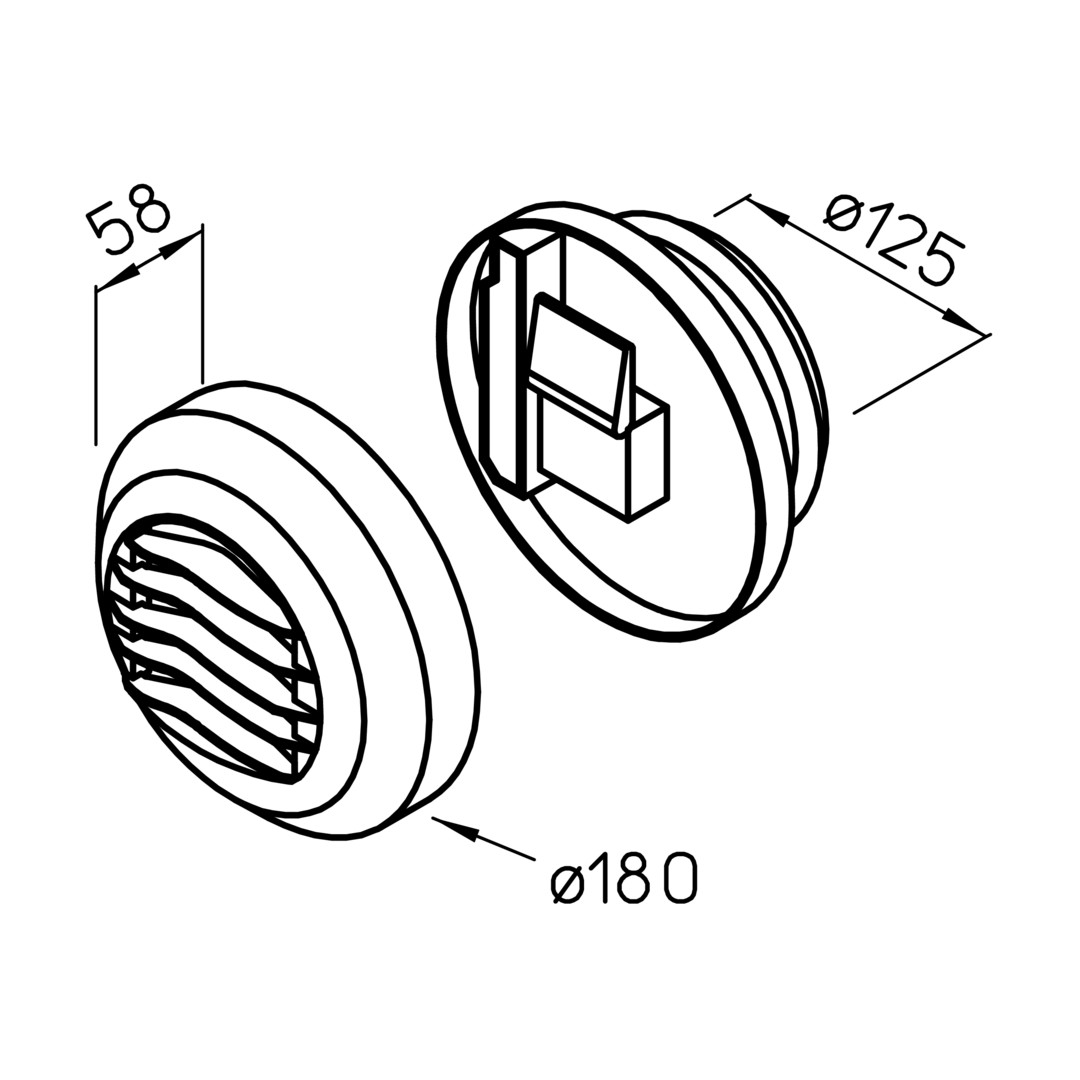Einbaufertiger Abluftautomat mit variablem, feuchteabhängig gesteuertem Volumenstrom, aus weißem Kunststoff, zum Einschub in Rohre mit ND 125 mm. Automat. Regelung des Volumenstroms abhängig von rel. Raumfeuchte zw. min. und max. Begrenzung. Kein elektrischer Anschluss erforderlich. Für Wand- und Deckeneinbau geeignet.
