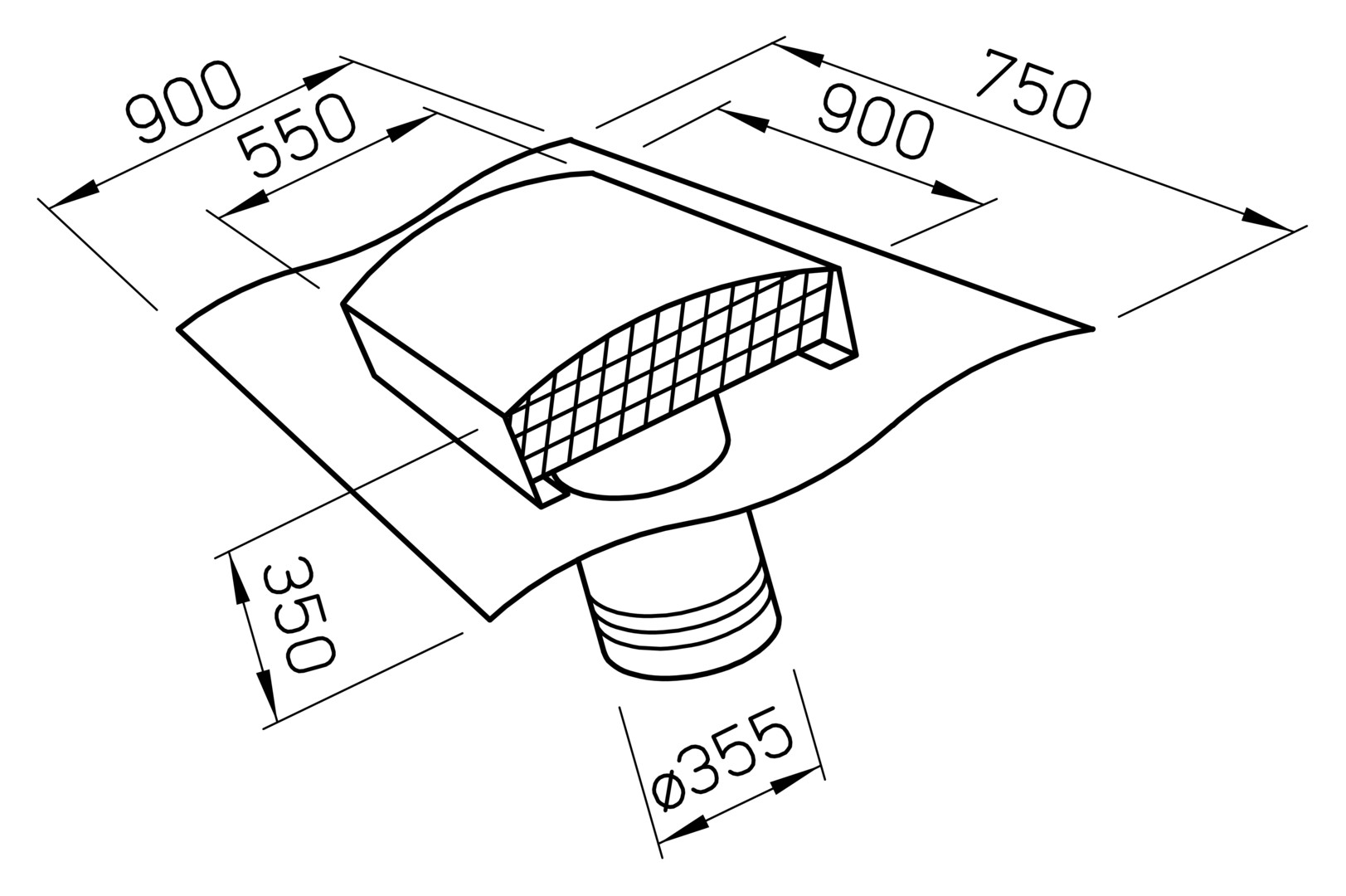Helios DDF 355 G, Dachdurchführung für Rohrdurchmesser 355 mm Dachhaube schiefergrau lackiert