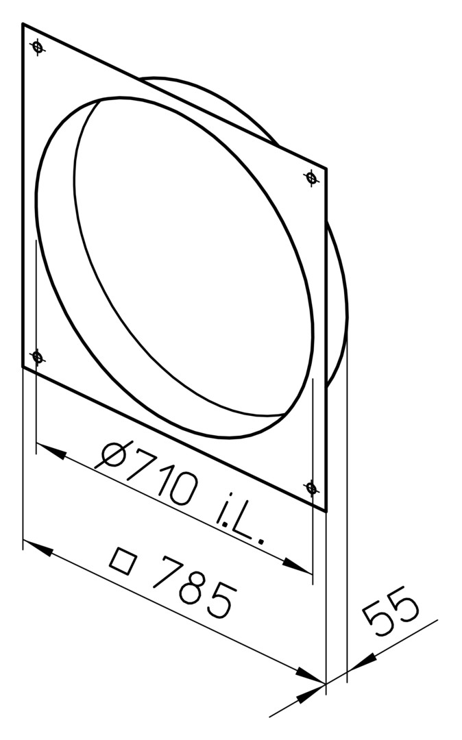 Adapter-Stück aus verzinktem Stahlblech zur direkten Montage von Verschlußklappen auf zylindrischen Ventilatorstutzen oder Rohre. 4 Bohrungen in den Ecken zur Befestigung der Verschlußklappen. Runder Stutzen auf das Ventilatorgehäuse aufschiebbar, mittels Schneidschrauben zu befestigen.