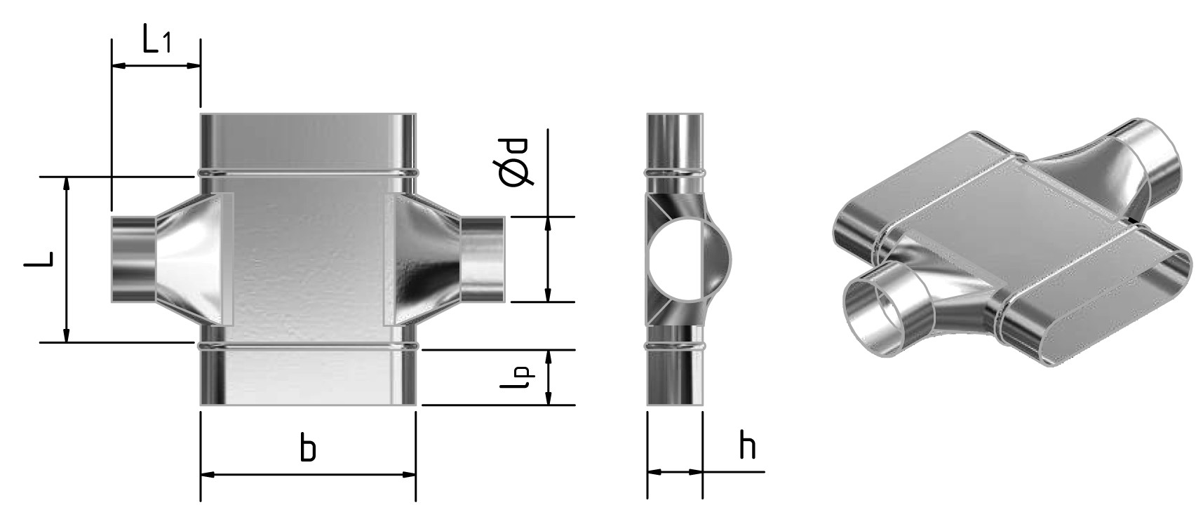 m+a Kreuzstück KWL-KXHAOR horizontal, asymmetrisch, oval-rund, BxH=260x50 auf D=2x64mm