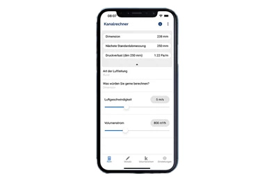 Die App bietet eine benutzerfreundliche Oberfläche, die Ihnen bei der Gestaltung und Feinabstimmung Ihrer Lüftungssysteme hilft. Sie können spielend leicht den Druckverlust, die Dimensionierung der Kanäle, den Versatz bei Bögen und T-Stücken, den k-Wert oder den Volumenstrom berechnen. Einfach die App öffnen, die bekannten Daten eingeben und in Sekundenschnelle erhalten Sie die gewünschten Ergebnisse.